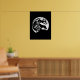 Poster en un diseño blanco y negro de un lobo que aullaba dramáticamente, silueta frente a una luna llena brillante. Toda la escena se siente poderosa, primaria, y apenas un poquito diferente - perfecta para una estética nocturna amorosa.