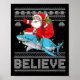 Womens Santa Riding Shark Ugly Christmas Sweater Believe Xmas V-neck