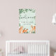 This welcome sign features a cute woodland animals design with modern hand-lettered welcome heading. The sign can be customised to suit any event.