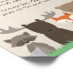 Muestra nuestro cartel de juego con el tema "No digas bebé" en el bosque cerca de la entrada de la ducha de bebé con un suministro de pines (pines de pañales o pines de ropa) para comenzar el evento con un juego divertido e interactivo. Los huéspedes pondrán un alfiler en su ropa. Si oyen a otro invitado decir la palabra "bebé", llegarán a robar los pines de esa persona. Quien tenga más pines al final de la ducha es el ganador. Puede cambiar fácilmente la redacción a "collares" o a otra cosa de su elección si lo prefiere. Los animales de la zona de bosque incluyen un zorro, un alce, un oso, un mapache y un conejo.