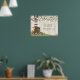 A baby shower poster featuring an illustration of a tree in the forest surrounded by a fox, raccoon, and an owl sitting on banner wrapped around trunk that says, "It's A Boy!" Blue and white bunting hangs among the leaves. Personalize the name. Matching baby shower invitations and coordinating items are available at Jill's Paperie.