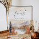 Woodland favorece la señal que presenta una escena de bosques de acuarela y un tipo de letra moderno. Este hermoso cartel en la mesa es perfecto para una ducha de bebé de otoño rústica, ducha de novia, boda u otro evento especial. Póngalo con cualquier cosa de la colección RILEY para un aspecto cohesivo.