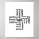 An assortment of words from the Pater Noster (Lords Prayer) in Latin, arranged as a word cloud in the form of a cross. The original text is: Pater noster, qui es in caelis, sanctificetur nomen tuum. Adveniat regnum tuum. Fiat voluntas tua, sicut in caelo, et in terra. Panem nostrum cotidianum da nobis hodie. Et dimitte nobis debita nostra, sicut et nos dimittimus debitoribus nostris. Et ne nos inducas in tentationem, sed libera nos a malo. Quia tuum est regnum et potestas et gloria in saecula. Amen.