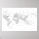 Beautifully designed map of placenames of the world, in English. Includes city names, capitols, country names, geographic placenames.