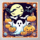 Fantástica y espeluznante Halloween. Una gran luna con amigos fantasmas, calabazas y murciélagos.