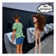 Two people are in a men's restroom, observing each other using the urinals, with one wearing a short dress and looking very much like a female. One with a thought bubble that says, "WOW that's impressive"