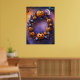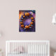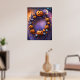 Añade un toque mágico a tu decoración de Halloween con este encantador poster. Con una flor de flores moradas y azules, adornada con brillantes calabazas azules y naranjas, esta obra de arte capta el espeluznante pero festivo espíritu de Halloween. La luna llena, los murciélagos voladores y las hojas de otoño dispersas en el fondo realzan el ambiente espeluznante, lo que lo convierte en un complemento perfecto para su decoración de temporada.