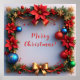 Festiva corona de vacaciones con poinsettias rojas, baudias decorativas y acentos de cinta dorada, ambientada con un vibrante fondo, perfecta para diseños de temporada de Navidades, invitaciones y tarjetas de felicitación.