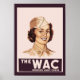Joven, fresca, mujer de bonito con uniforme. Afiche de época que anuncia la WAC (Cuerpo de Mujeres del Ejército de la Segunda Guerra Mundial). Tonos marrones con fondo rosa claro