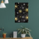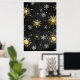 Póster Xmas copos de nieve dorados sobre fondo negro