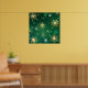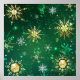 Póster Xmas copos de nieve dorados sobre fondo verde