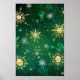 Póster Xmas copos de nieve dorados sobre fondo verde
