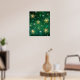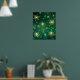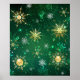 Póster Xmas copos de nieve dorados sobre fondo verde