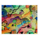 Resumen Los medios mixtos sobre papel acuarela compuestos de pintura acuarela y tintas de una gama vibrante de formas geométricas, incluidos círculos, triángulos y cuadrados que representan objetos soplados por el viento a través del cielo.