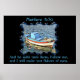 Y les dijo: "Sígueme, y os haré pescadores de hombres. Mateo 4:30 en un poster con una vieja barca en el océano tranquilo.