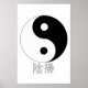 Poster de personaje de caligrafía china en blanco y negro Yin yang
