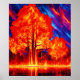 Una impresionante escena de arboles feroces brillando en un intenso fuego contra un cielo nocturno vívido. Una mezcla surrealista de fuego y naturaleza en un impresionante arte digital (Este diseño hecho con IA). ¡Haga el pedido hoy y acepte la alegría de ir de compras!