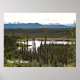 Vistas a la taiga del Yukón. También aparece un texto de personalizable que dice "El Yukón". La taiga, o bosque boreal, cubre vastas partes de la alta latitud norte del norte de Europa a través de Rusia europea y Siberia, a Alaska y Canadá, entre las estepas al sur y la tundra sin árboles más al norte. La taiga se caracteriza por un bosque de coníferas interminable, la tierra pantanosa salpicada de lagos y estanques. El Black Spruce, Picea mariana, son muy comunes y adquiere una forma de columnar cuando crece en terreno húmedo como en este punto de vista desde cerca de Beaver Creek, Territorio Yukón. Durante el verano, los mosquitos pueden ser increíblemente numerosos.