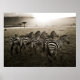 A poster featuring an image of zebras at daybreak in the Masai Mara, Kenya. This poster is fully customizable and available in all sizes and printing materials.