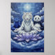 A layered oil acrylic group portrait of a white tiger, a giant panda, and a blue tabby cat meditating together. They are surrounded by indigo clouds and glowing constellations under a brilliant celestial pillar of light. This group portrait unites the WhiteTiger, PandaBear, and the BlueTabbyCat symbolizing collective balance and intuitive harmony. The rich impasto brushwork and deep amethyst tones make this a stunning focal point for any healing space.