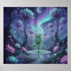 This fantasy poster features a meditative frog balances on a lily pad beneath aurora skies, surrounded by glowing lotus blooms and enchanted forest reflections.