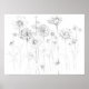 Poster floral de bonito gris con flores de zinnia, cosmos y chamóteles dibujados con lápiz para una elegante decoración botánica.