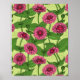 Póster Zinnias rosas sobre verde claro