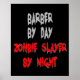 Este espeluznante diseño de texto con la cita "Barber by Day Zombie Slayer by Night" en la escritura roja de sangre, es perfecto para cualquier barbero que ame a los zombies.