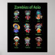 Un zombi al estilo Kawaii que representa a diferentes países de Asia: Camboya, China, India, Japón, Corea, Filipinas, Taiwán y Vietnam.