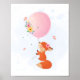 Este bonito cartel de acuarela con un zorrito lindo volando con un globo rosa es perfecto para decorar una guardería o un dormitorio de niños. Encuentra los productos que necesitas en mi tienda.