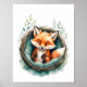 Póster Zorro Durmiendo Dulcemente Ilustración de Acuarela