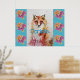 Póster Zorro Rojo Lindo Animal Rosa Verde Rosas