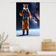 Póster zorro rojo usando un traje espacial genial | Poste