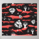 Patrón sin foco con zorros rojos sobre un fondo oscuro. Un ejemplo para el diseño de postales y la web. Disfruta de un patrón impecable con zorros rojos en un fondo oscuro. Las franjas sin foco abrazan motivos tribales y aztecos. ¡Un toque de encanto vintage hecho a mano! fondo, patrón, ilustracion, decoración, moda, naturaleza, bosque, línea, creativo, sin costura, cara, retrato, lindo, silueta, rojo, dibujo, adorno, moderno, hermoso, fauna