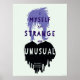 Ilustracion gráfico del pelo y la tapa de Lydia Deetz, con la cita "Yo mismo soy extraño e inusual".
