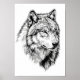 A striking black and white animal portrait poster: detailed ink sketch of a wolf in dramatic contrast. Ideal for wildlife lovers, study rooms, or statement walls. Offered in multiple sizes, from small art to large focal pieces.