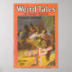 El poster exhibe el icónico arte de portada de la revista "Weird Tales", una publicación polvorienta que popularizó la ficción especulativa y los géneros de horror a principios del siglo XX. La portada incluye a un grupo de escritores influyentes que incluyen a H.P. Lovecraft, Robert E. Howard, Robert Bloch, Ashton Clark Smith, y otras luminarias literarias que contribuyeron a la revista. El arte de portada en sí es una obra maestra de imágenes escabrosas y colores llamativos, con otras criaturas del mundo, paisajes sobrenaturales y acontecimientos extraños. Las historias que aparecen en la revista son famosas por sus sensibilidades góticas, su atmósfera espeluznante y los conceptos imaginativos que han inspirado a generaciones de escritores y artistas. El poster es un tributo al legado perdurable de "Cuentos raros" y su papel pionero en la configuración del horror moderno y los géneros de fantasía. Es una necesidad para los fans de la ficción de pulpa, la literatura de terror y la ciencia ficción clásica, y un testamento del poder duradero de la narración para transportarnos a reinos extraños y maravillosos más allá de nuestra imaginación más descabellada.