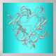 Elegante poster de fiesta de 16 años del corazón azul verde azulado plateado dulce.