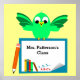 Personalizar este poster personalizado en aula de un pájaro personalizado en un cartel blanco impreso con el nombre del profesor, lápiz y libros en primer plano. Se puede cambiar el color del texto y del fondo.