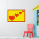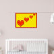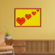 Cuatro corazones rojos felices con fondo amarillo. Enmarcado en rojo.