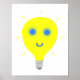 Pintura de una bombilla amarilla, con ojos azules y una sonrisa de flecha añadida, se imprime en pósters de pared. Puede elegir su tamaño y tipo de papel.