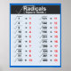 Posters radicales de raíces cuadradas. Tabla o gráfico cuadrado perfecto.