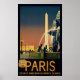 París, édité par les grands réseaux des chemins de fer Français (París, publicado por las principales redes ferroviarias de Francia). Afiche de viaje de Julien Lacaze muestra la plaza de la Concordia con obelisco y fuentes.