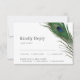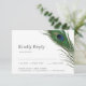 Un conjunto minimalista pero hermoso de tarjetas de respuesta de boda con una elegante pluma de pavo real sobre la información y detalles de su boda.