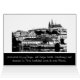 CARD: Histórico panorama de la ciudad de Praga con detalles sobre la Catedral St. Vitus, el Castillo Hradcany y la ciudad vieja sobre el río Vltava - dibujo de arte digital en blanco y negro. Fotografía original/Arte/Diseño de work4dream.