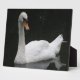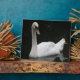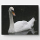 Esta impresionante placa muestra una fotografía de un hermoso cisne blanco. El cisne es un cisne mudo macho, se puede decir que es macho por el bulto negro en el pico. El cisne está deslizándose con gracia a través del agua en un lago tranquilo.