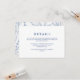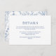 La hermosa tarjeta de boda azul y blanco incluye flores románticas ilustradas y tipografía clásica. La parte trasera es un hermoso patrón floral de arte de línea.