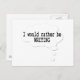 Una burbuja personalizado dice 'Prefiero estar ESCRIBIENDO' en letras negras contra un fondo blanco. Postales únicas para escritores y divertida idea de regalo de escritura.