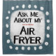 "Pregúntame sobre mi Air Fryer" es un divertido diseño de texto con una forma de acento blanco rodeado de puntos blancos y caprichosos.