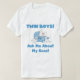 A la orgullosa nueva madre y padre de los bebés mellizos les encantará este lindo diseño que incluye dos conejitos de niños y texto azul que dice "¡Niños gemelos! ¡Pregúntame Por Mis Hijos!" Camisetas gemelas, tarjetas, botones, imanes, bolsas, ratones y otros!